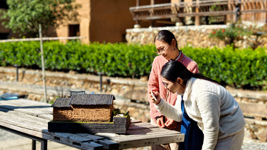 多年的建筑从业经验让他熟悉房屋结构,但微缩模型制作考验的更是极致的耐心。从比例换算、图纸绘制,到材料选择与色彩搭配,每一步都需精益求精。“最难的是还原那种岁月感。”为了复刻黄土墙独特的颜色与斑驳纹理,他尝试了多种方法,最终找到了最“土”也最神奇的方法——加入真实的黄泥巴。通过层层渲染与塑形,墙面终于呈现出那种饱经风霜的视觉效果。